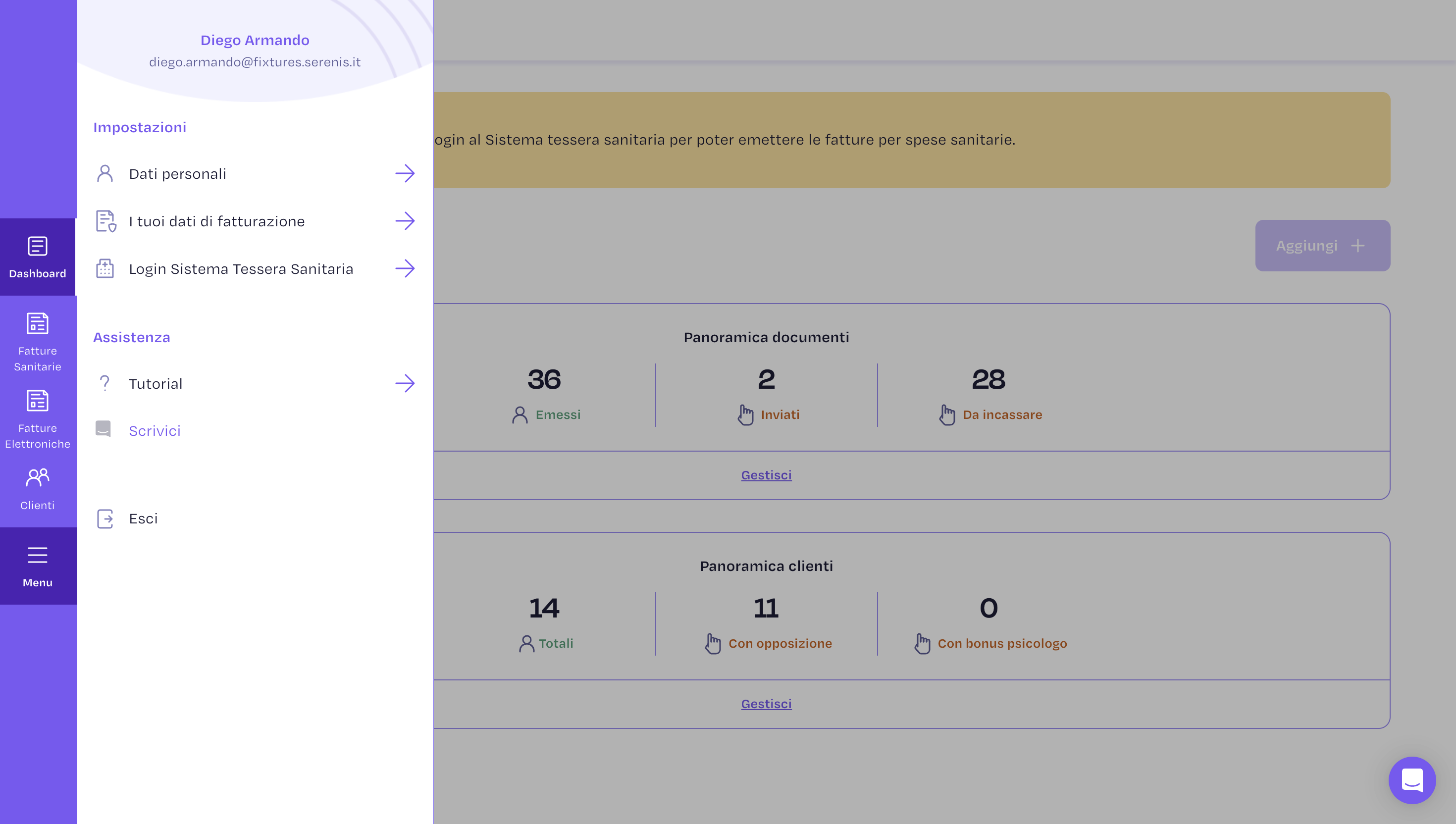 I tuoi dati servono a Gesto per inserirli all’interno dell’intestazione delle fatture. Sono anche quei dati che trasmettiamo insieme a quelli dei tuoi clienti e delle prestazioni al sistema di interscambio e al Sistema tessera sanitaria. È importante che questi dati siano sempre aggiornati e corretti!