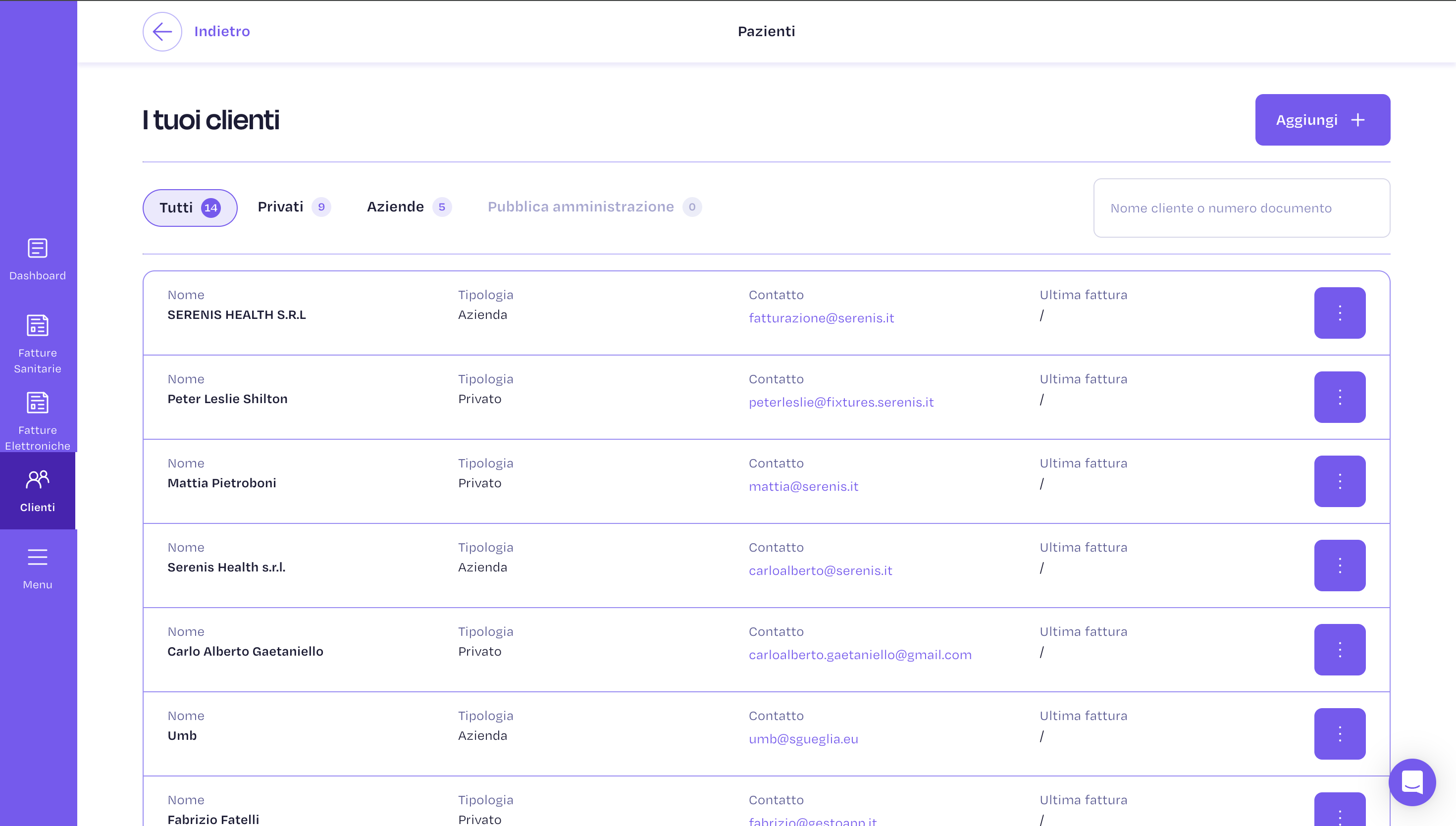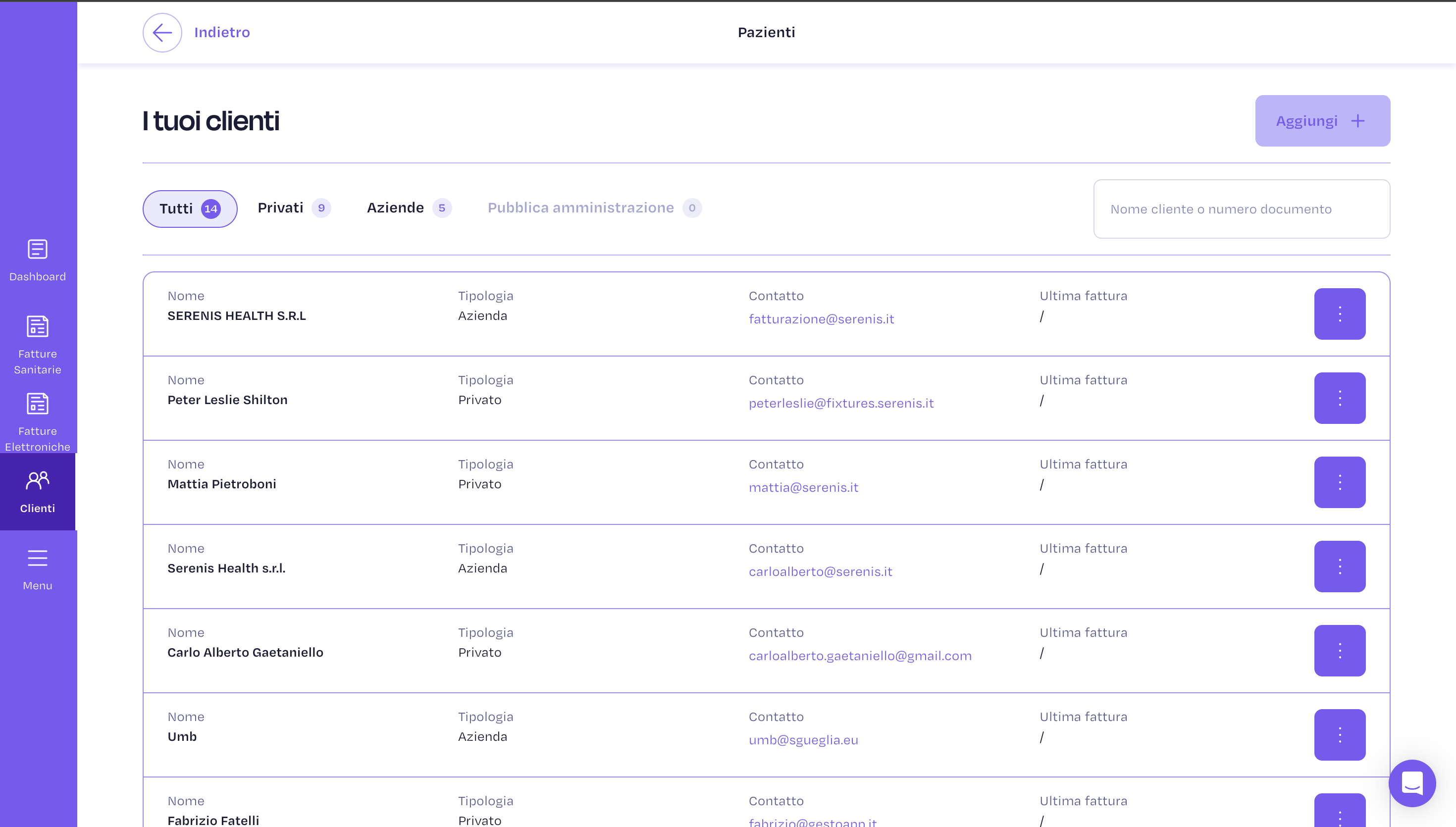 La lista clienti ti permette di avere sempre pieno controllo di tutte le informazioni legate ai tuoi pazienti e alle organizzazioni con cui collabori.Dove trovo i miei clienti?